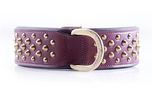 Brass & Cherry Leather Dog Collar - "RuffNeck"