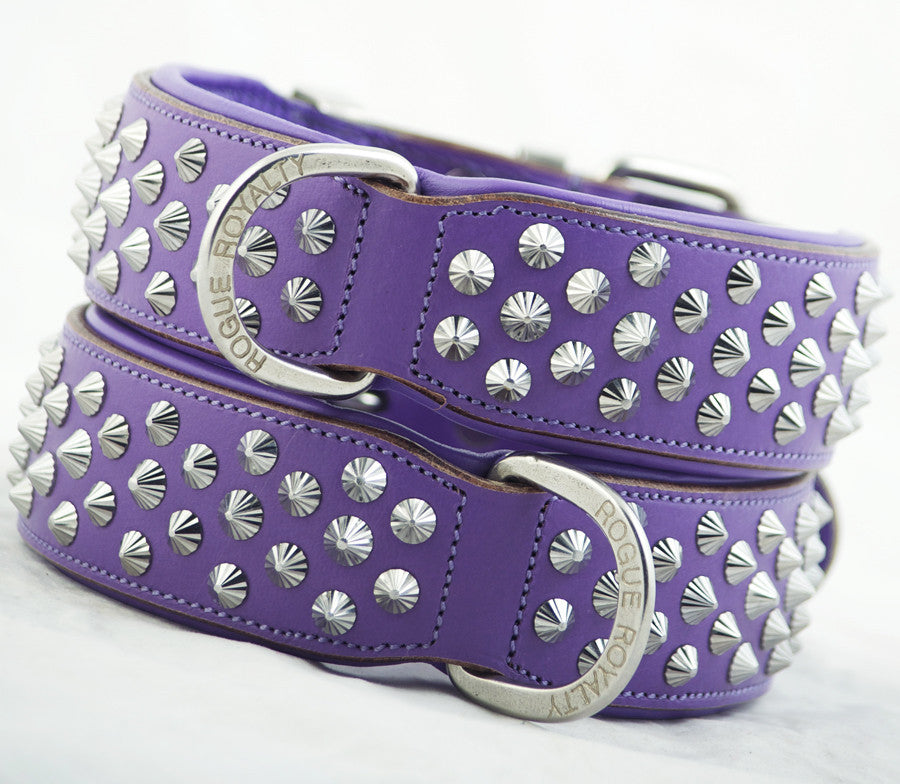 Dog Collar - Imperial Purple (Diamond Cone Studs)