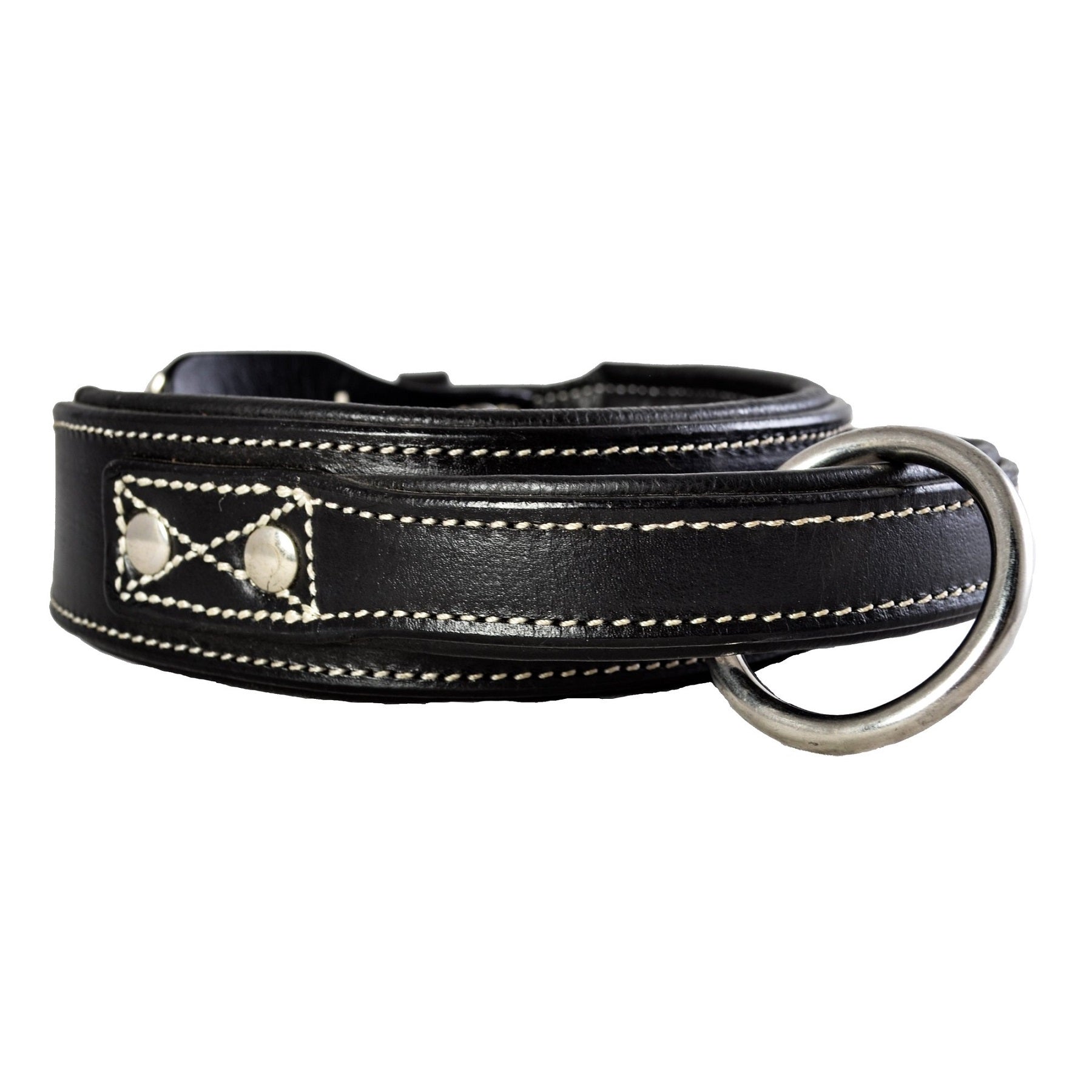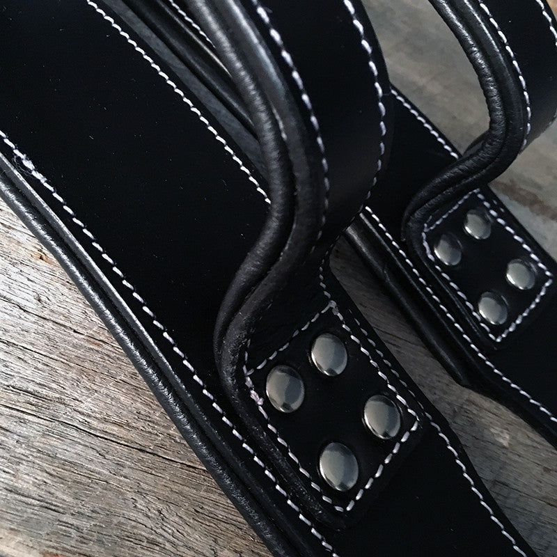 Deze lederen halsband met handvat is gemaakt het beste kwaliteit tuigleer. Het stiksel zijn versterkt met metalen studs en onze lederen halsbanden zijn gemaakt van een dusdanige kwaliteit om een hondenleven lang mee te gaan.