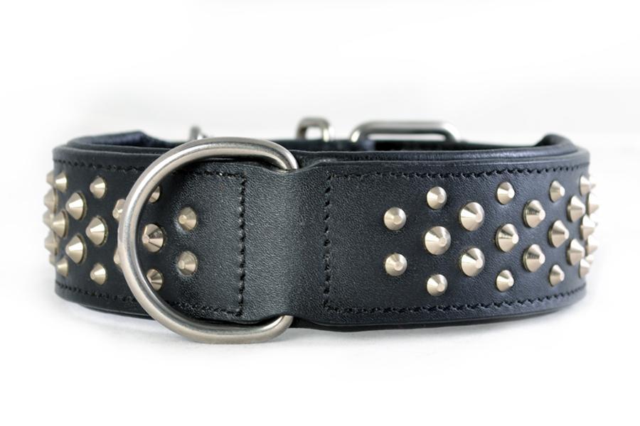 - Handgemaakte dubbel gestikte lederen halsband;
