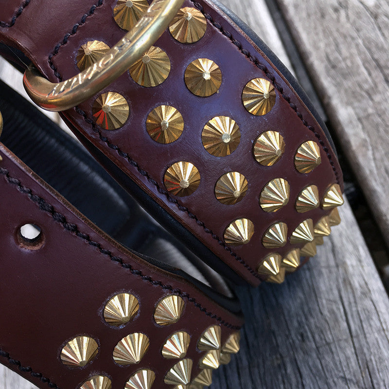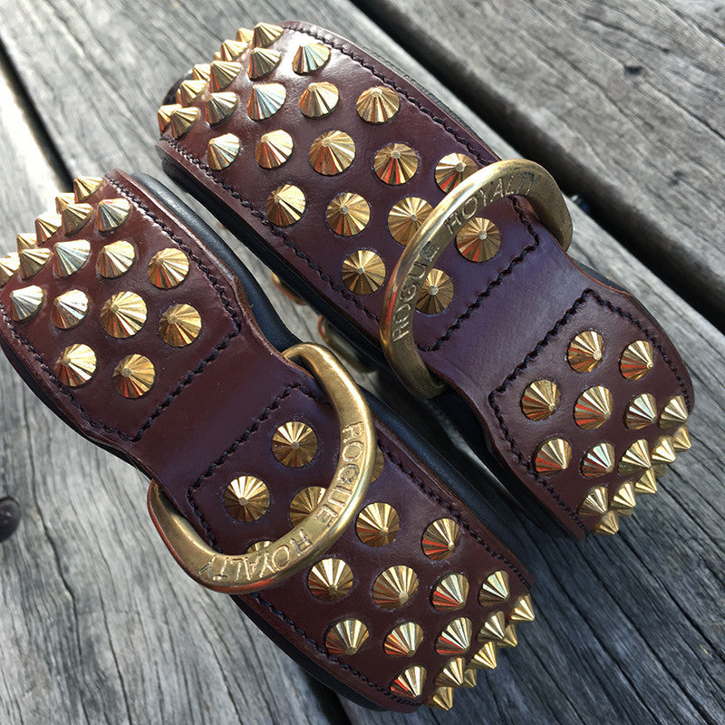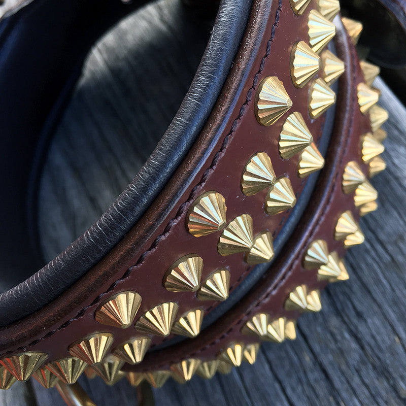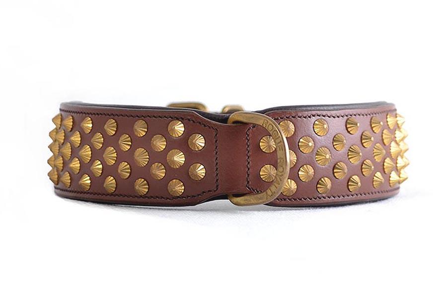Dog Collar - Ruthless Brown Leather & Brass (Wide Fit)