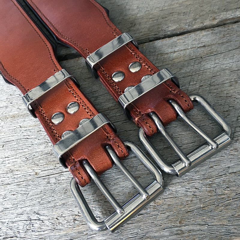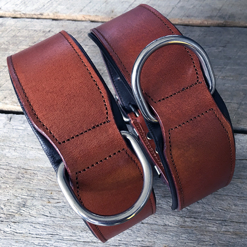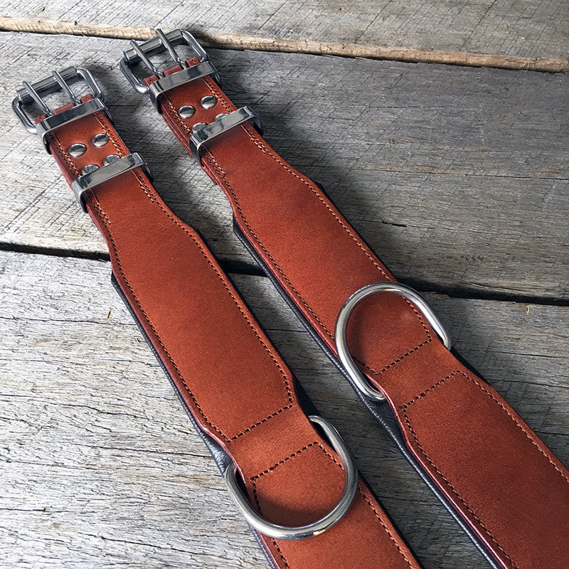 Wij produceren de sterkste lederen halsbanden door cruciale punten extra te verstevigen met zowel stiksels als stalen studs (de meeste halsbanden gebruiken alleen de ene of de andere). De locatie van de volledig gelaste D-ring omvat de hele lederen band, waardoor eventuele kracht van trekken over de gehele breedte van de kraag verdeeld is voor extra stevigheid, kracht en veiligheid. De meeste hondenbanden hebben de D-ring in de buurt van de gesp wat de spanknopjes en de pinnen verzwakt, wat een gebroken halsband kan veroorzaken --> problemen ..... en een ander verspilling van geld.