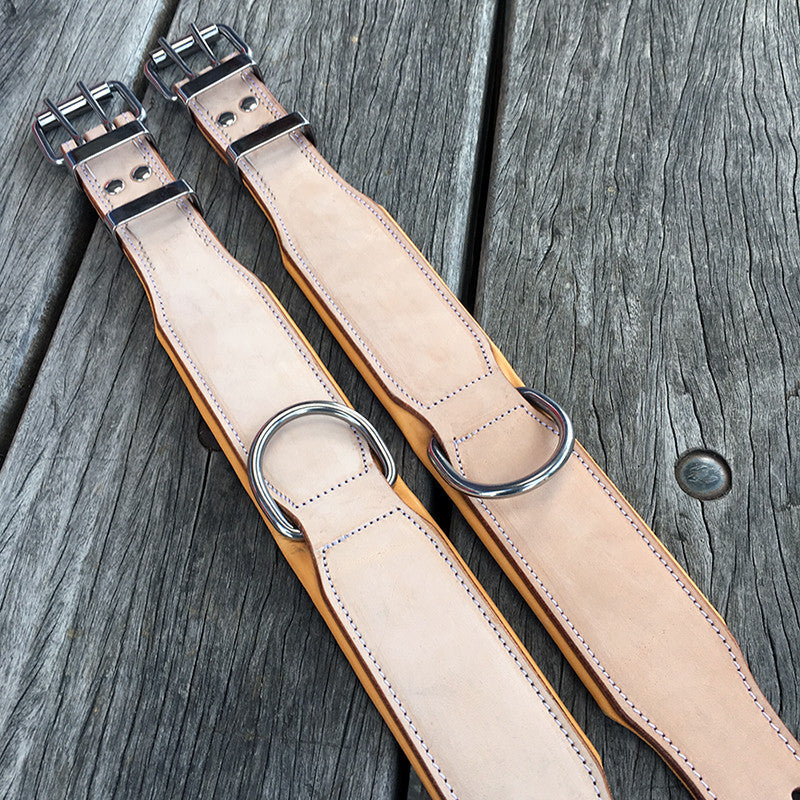 Wij produceren de sterkste lederen halsbanden door cruciale punten extra te verstevigen met zowel stiksels als stalen studs (de meeste halsbanden gebruiken alleen de ene of de andere). De locatie van de volledig gelaste D-ring omvat de hele lederen band, waardoor eventuele kracht van trekken over de gehele breedte van de kraag verdeeld is voor extra stevigheid, kracht en veiligheid. De meeste hondenbanden hebben de D-ring in de buurt van de gesp wat de spanknopjes en de pinnen verzwakt, wat een gebroken halsband kan veroorzaken --> problemen ..... en een ander verspilling van geld.