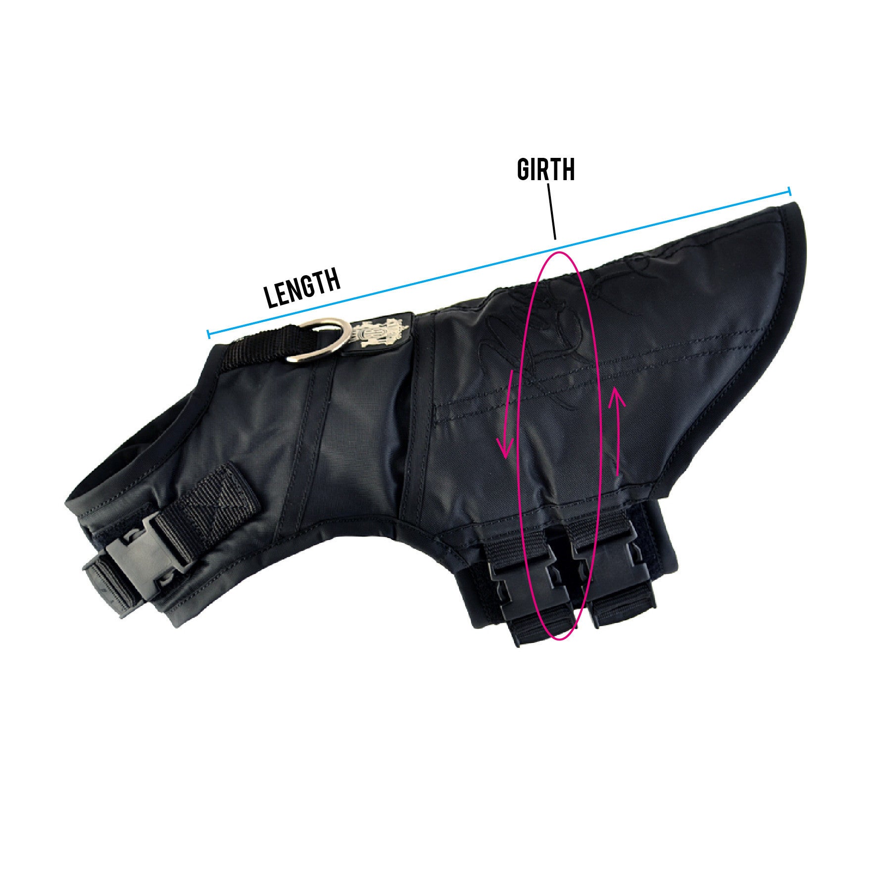 Onze hondenjassen zijn ontworpen voor volledige dekking, terwijl het volledige vrije bewegingsvrijheid mogelijk blijft. Aan de voorkant en rondom de borst is de jas vast te maken door middel van gespen en klittenband.